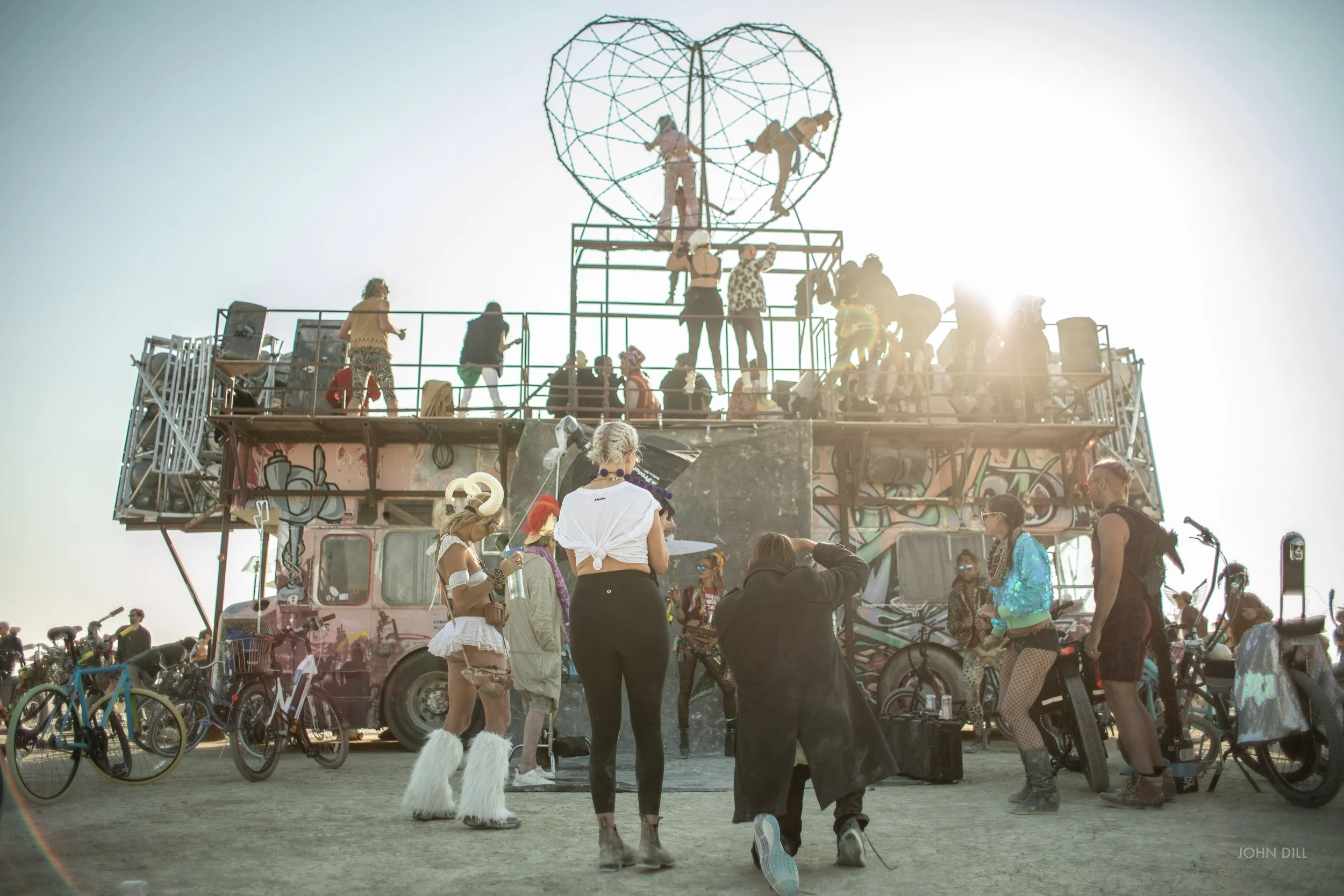 The Mayflies pop up studio behind the Robot Heart Bus in Deep Playa, Burning Man, BlackRock City