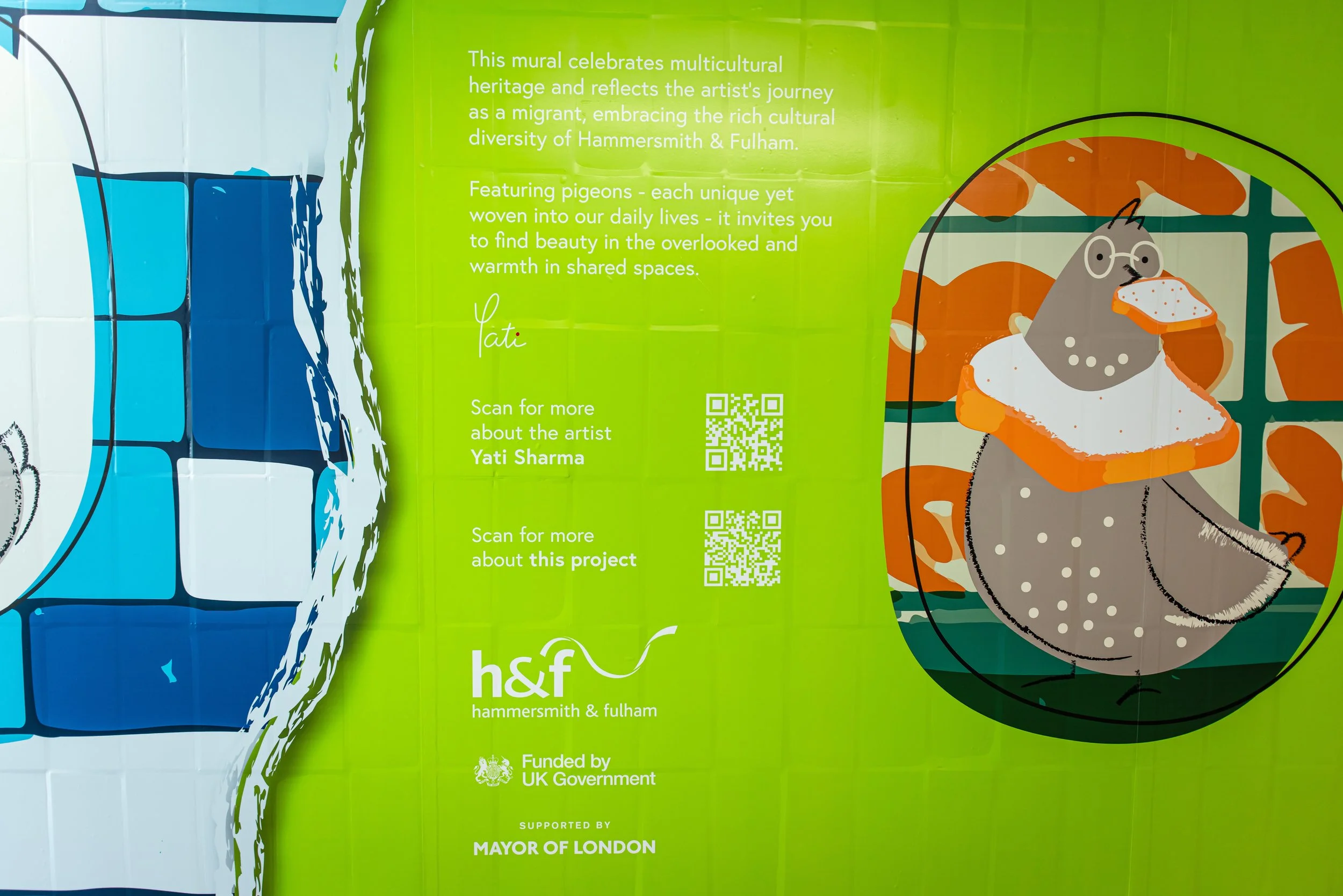 MONSOLO was commissioned by Hammersmith and Fulham Council (with support of MoL and TFL) to deliver public artworks across the borough, aimed at revitalising neighbourhoods, enhancing pedestrian spaces, and addressing graffiti. Each project brought together local artists, tenants, and residents to create works that reflect the unique stories of their communities.